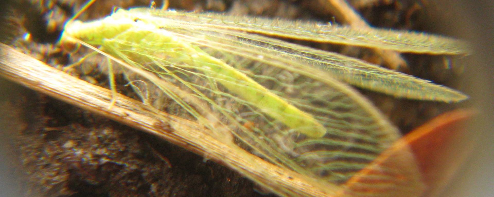 Green Lacewing adults are a delicate looking insect with lace like wings measuring about 2cm long (3/4 inch). They feed mainly on pollen, nectar and honeydew, but some species feed on insects. Their larvae however are voracious feeders of soft bodied insects such as thrips, mealybugs, caterpillars and insect eggs, but they especially like aphids, earning them the nick name aphid lions or aphid wolves. These alligator looking larvae are oblong shaped, off whiteish in colour with brown markings, tufts of hair down its length and measure about 1cm in length at maturity. Their voraciousness is attributed to it’s powerful curved and hollow jaw that ceases it’s prey and injects it with a poison to paralyze it, then sucks the life juices out it (in about 90 seconds), killing it. Each larva is able to consume about 100-200 insects per week. The larvae can bite humans so handle with care.