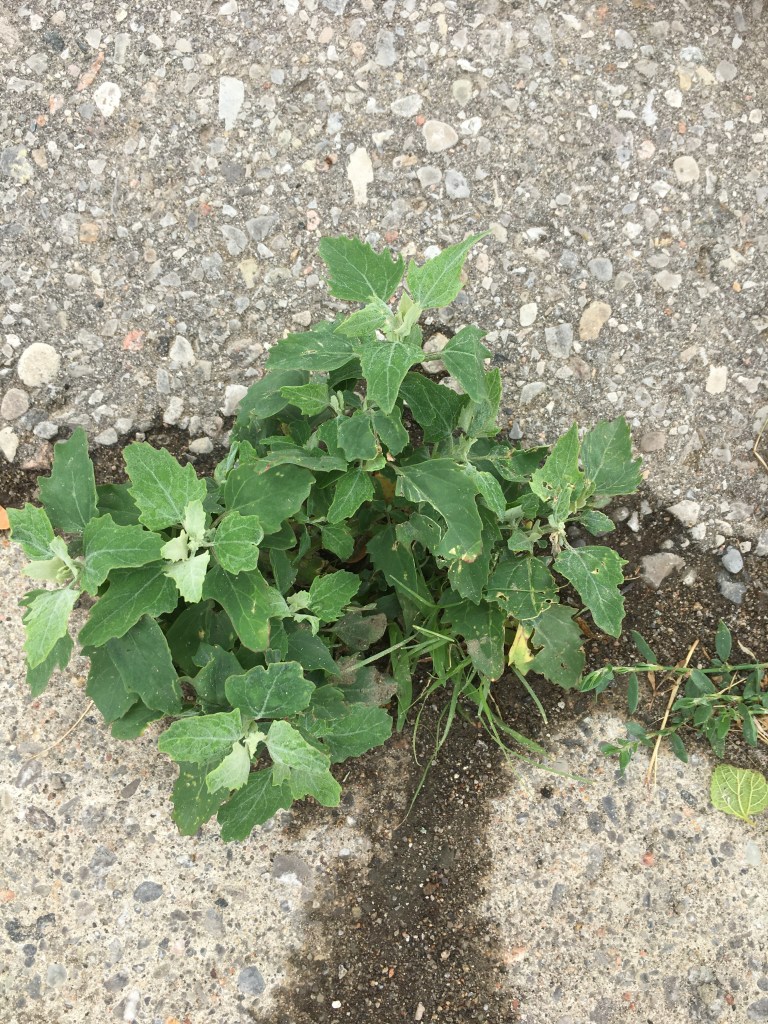 Lamb’s-quarters Management and Control: in the garden beds dig them out before they flower. If they are not in flower or seed, they may be composted, otherwise black bag them, as the flowers can still set seed even after the plant has been cut or removed. In regularly mowed turf grass, they are not typically a problem, as they do not fare well with regular mowing or foot traffic. In areas that are mowed infrequently they can be more problematic as they are able to flower at about 6″ in height if necessary. In interlock and other hardscape areas hand pull in moist soil, cut of regularly at ground level (a lawn trimmer works well for this).