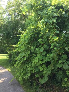 Wild grape vine has overtaken the trees and shrubs it has used to climb.
