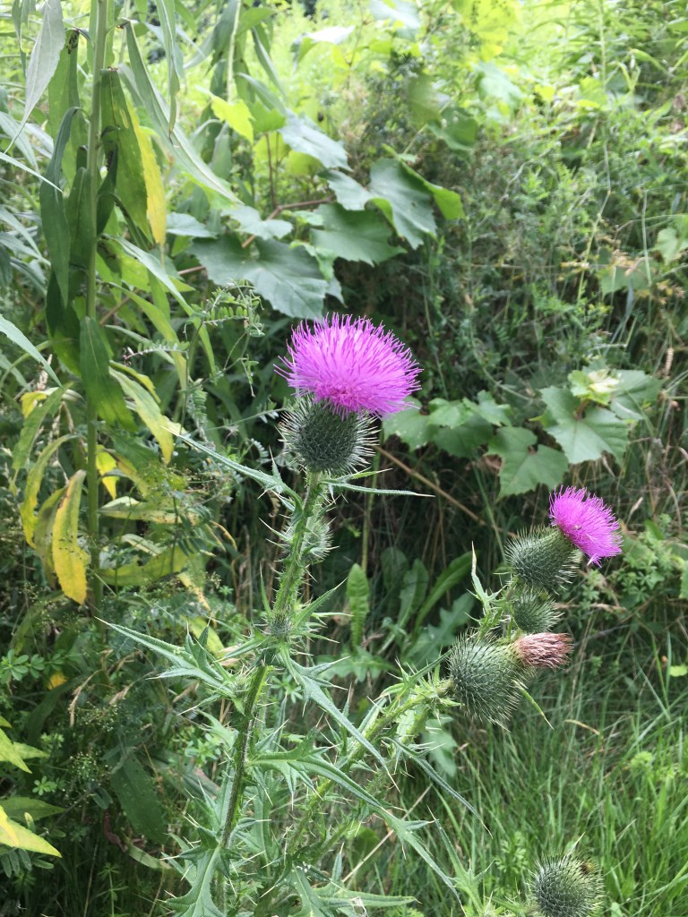 Bull thistle plants can get very tall in un mowed areas. This one was over 5 ft.
